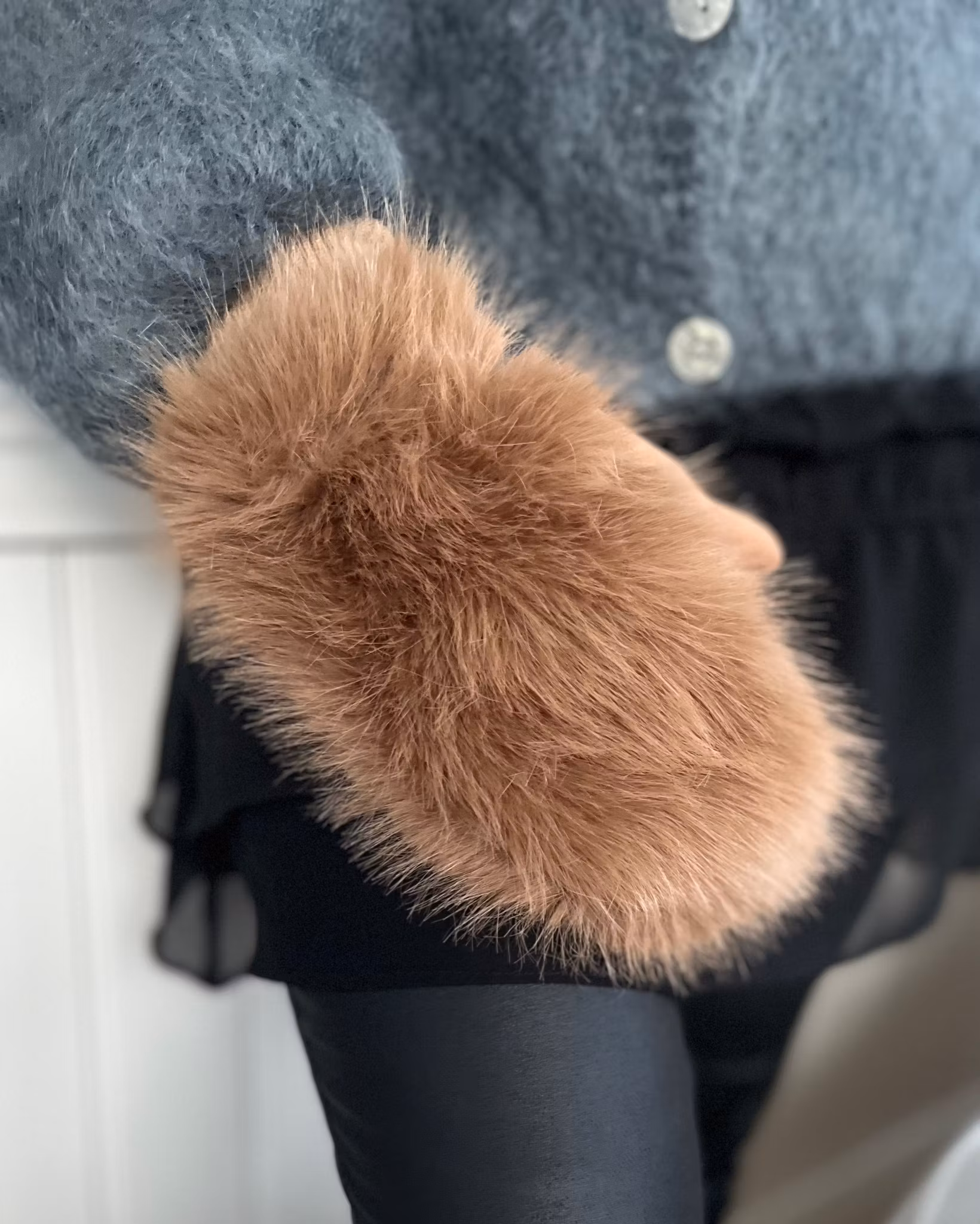 Hem › Accessoarer › Scarves/halsdukar/vantar/mössor › Vantar fuskpäls Vantar fuskpäls I lager. Färg Mörkbrun Brun Taupe Beige Offwhite Grå 0 kr 229 kr Supermjuka vantar i fuskmocka under och jättefluffig fuskpäls upptill