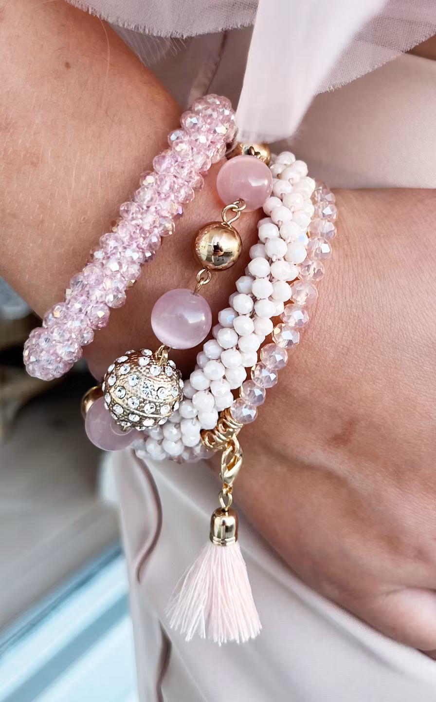 Hem › Accessoarer › Smycken › Armband Hanna rosa Armband Hanna rosa Produkten är tyvärr slut i lager. :( Jättefint elastiskt armband som även kan användas som hårband (de bredare elastiska på bilden)