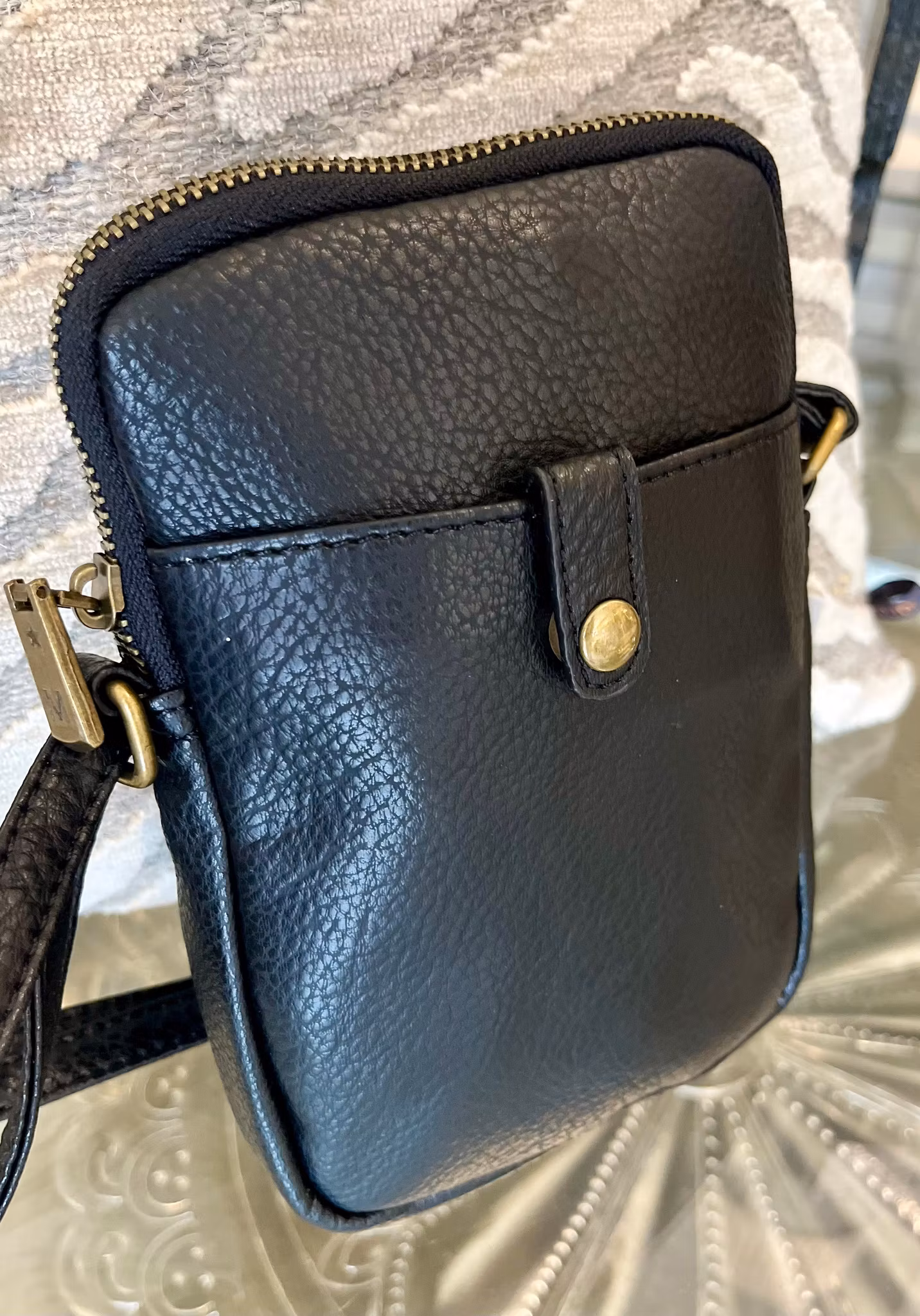 Hem › Accessoarer › Väskor › Mobilväska svart Mobilväska svart Produkten är tyvärr slut i lager. :( Jättesnygg mobilväska i fuskskinn som ser ut som riktigt skinn. Stängbart fack på baksidan och inuti, knäppfack på framsidan. Justerbar axelremCa 20x13cm