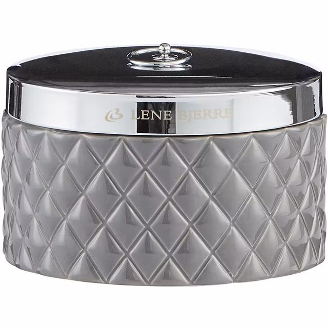 Hem › Bad/dofter › Badrum › Lene Bjerre Portia jar grey/silver Lene Bjerre Portia jar grey/silver I lager. 0 kr 599 kr Jättefin burk i porslin med lock, 15cm i diameter och 9cm hög