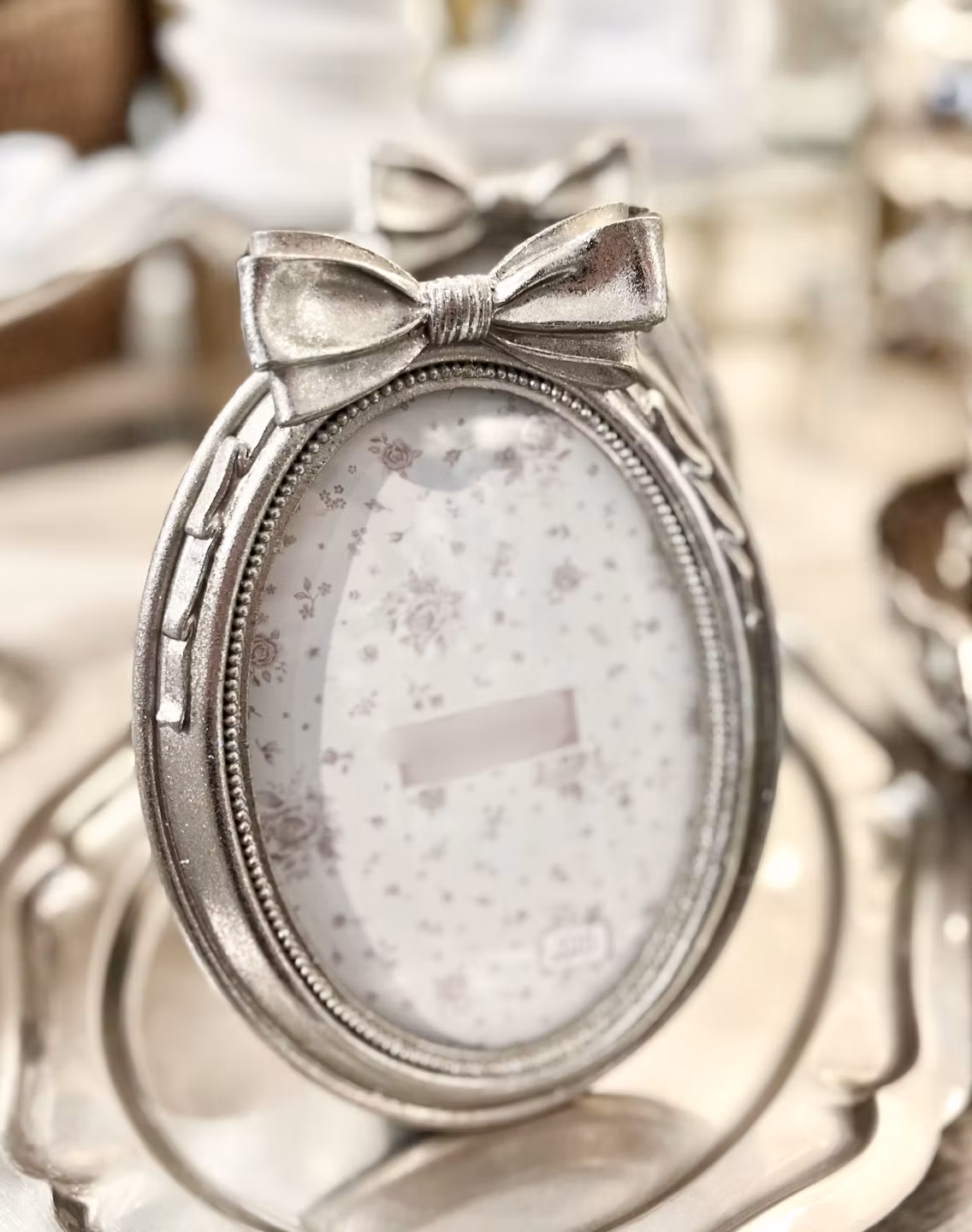 Hem › Inredning › Inredning/dekoration › Fotoram rosett silver Fotoram rosett silver I lager. 0 kr 220 kr Rund fotoram till foto 10x15cm. Själva ramen är 13x19cm och kan både ställas och hängas