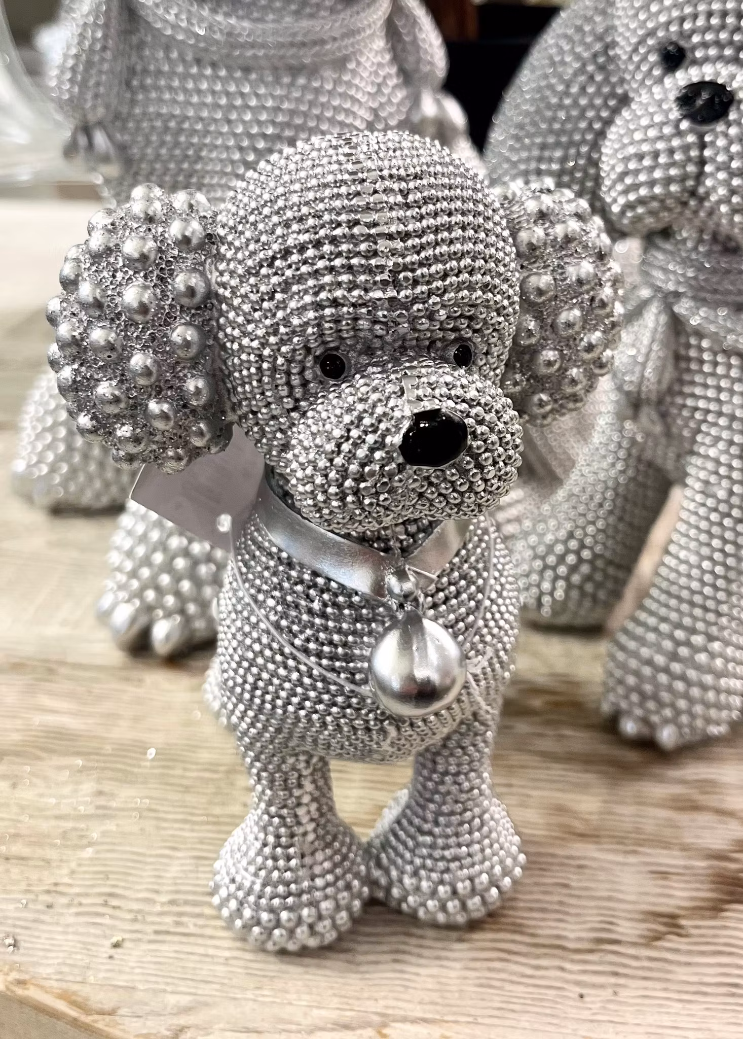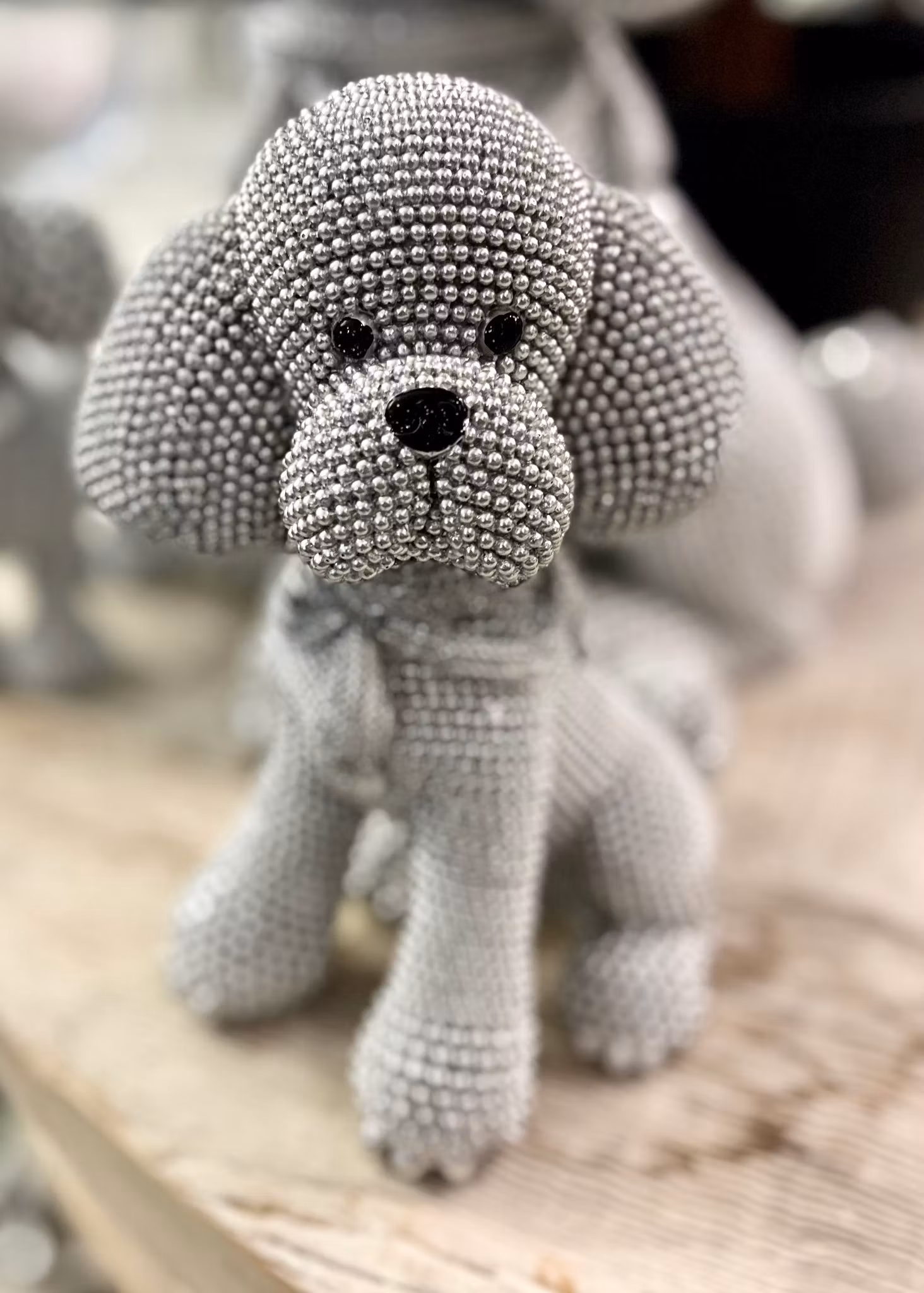 Hem › Inredning › Inredning/dekoration › Hundar silver Hundar silver I lager. Storlek Stående Sittande mindre Sittande större 0 kr 329 kr Jättefina hundar i polyresin fulla med silverpärlor (ganska tunga)Stående 15x14cm, sittande mindre 19cm hög, sittande större 29cm hög