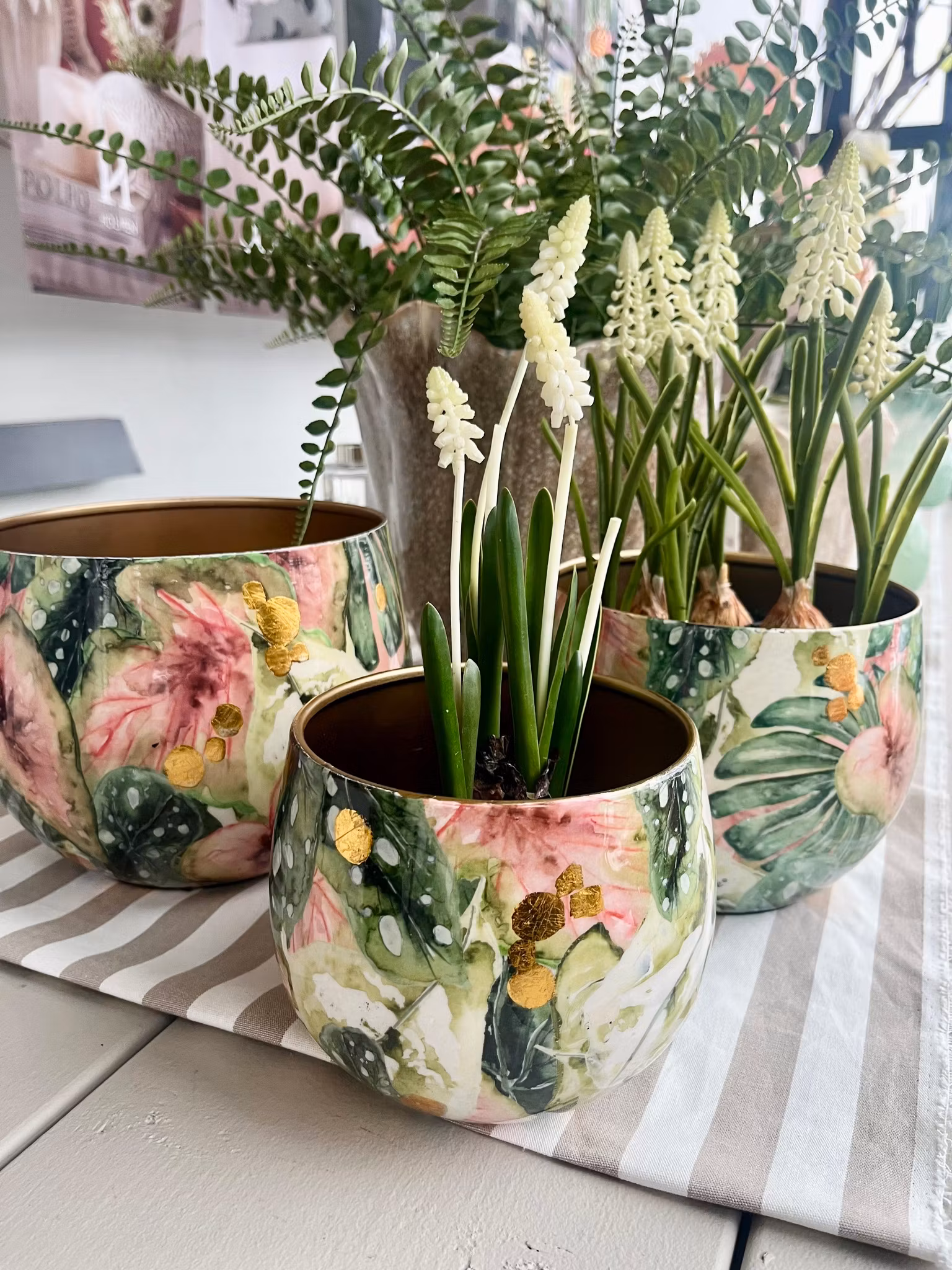 Superfina krukor som även kan användas som ljuslyktor. Mönstrad på utsidan och guldfärgad inuti. Innerkruka rekommenderas om det ska vattnas