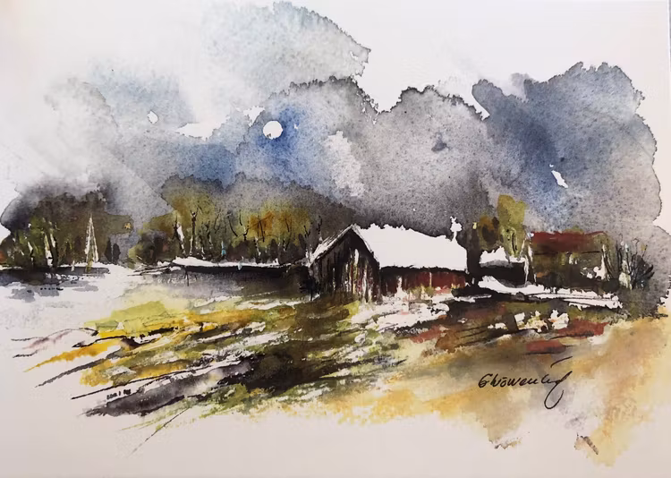 Kort uppt.ryckt som vykort av original i akvarell av Gerd Löwenlid. ca21x15cm
