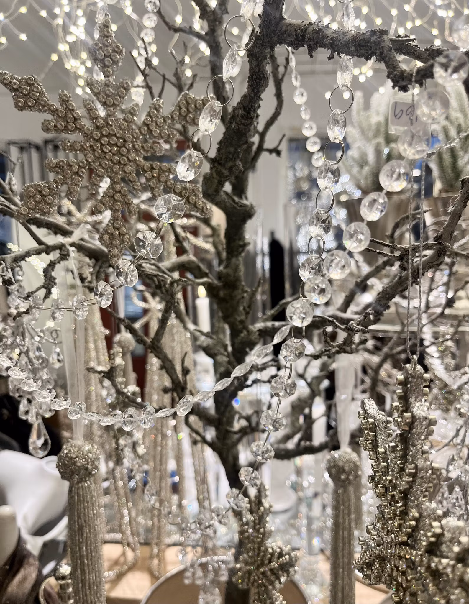 Tunnare band med plastkristaller. Snygg i grenar, granen, hänga i olika längder etc. Pris per meter så du kan få vilken längd du vill