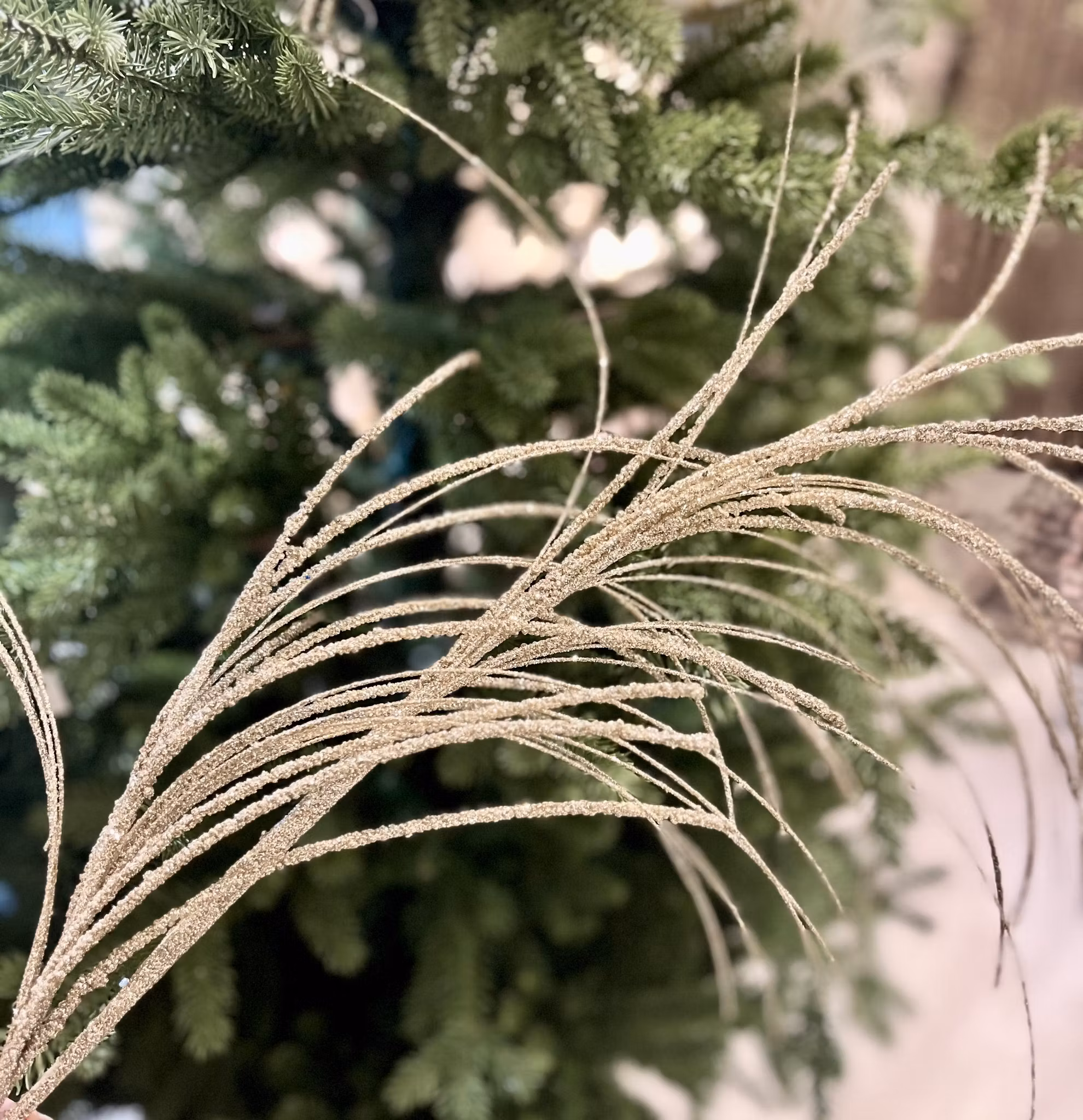 Hem › Julsaker › Hängande pynt/till julgranen › Gren champagne gräs Gren champagne gräs I lager. 0 kr 110 kr Jättefin gren i champagneglitter med spröt ut på 2 böjbara grenar. Hela grenen är 89cm (kan behöva böjas lätt när vi skickar)
