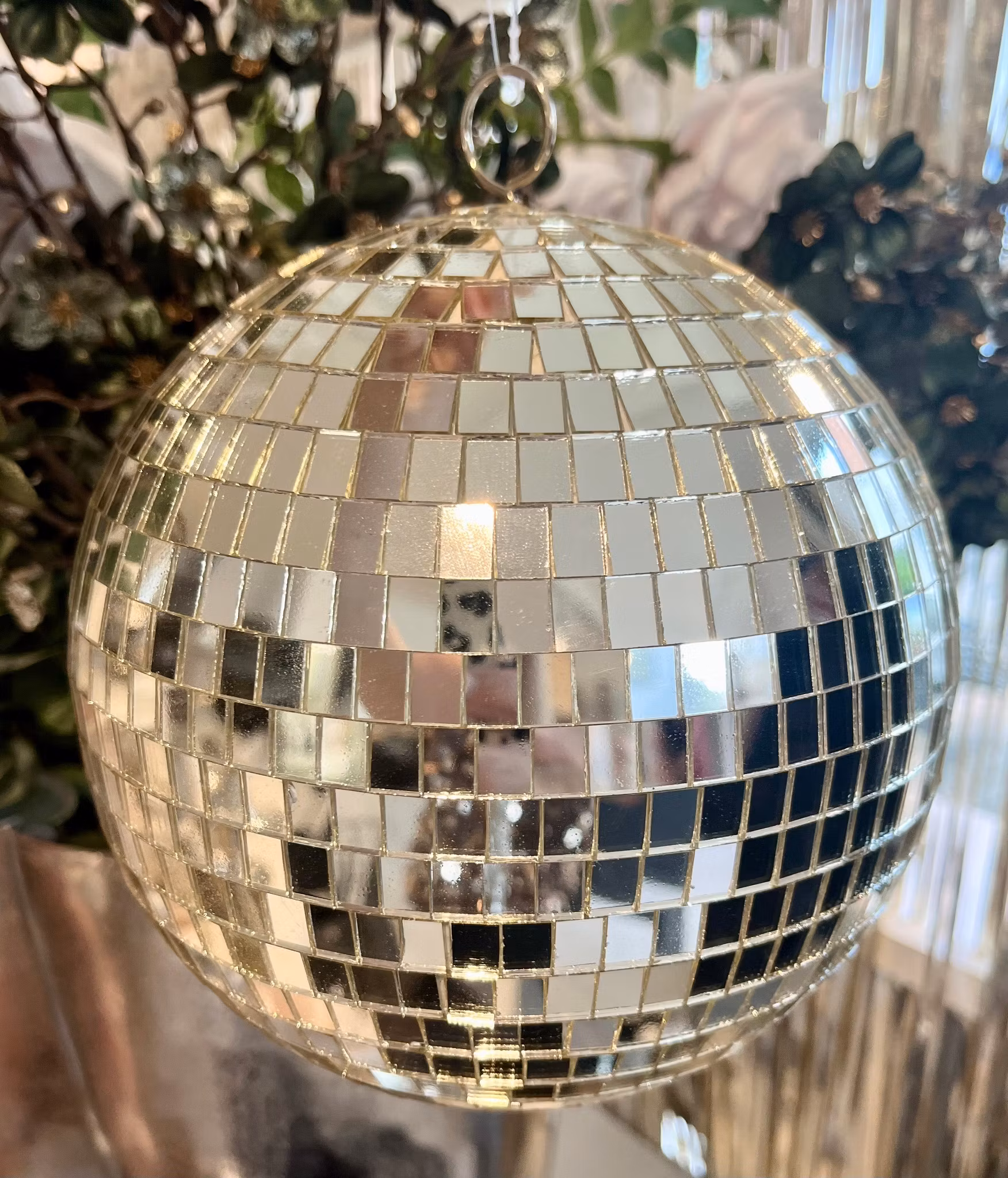 Hem › Julsaker › Hängande pynt/till julgranen › Julkula disco champagneguld 20cm Julkula disco champagneguld 20cm I lager. 0 kr 299 kr Jättefin som en discokula i den perfekta champagnefärgen, 20cm i diameter