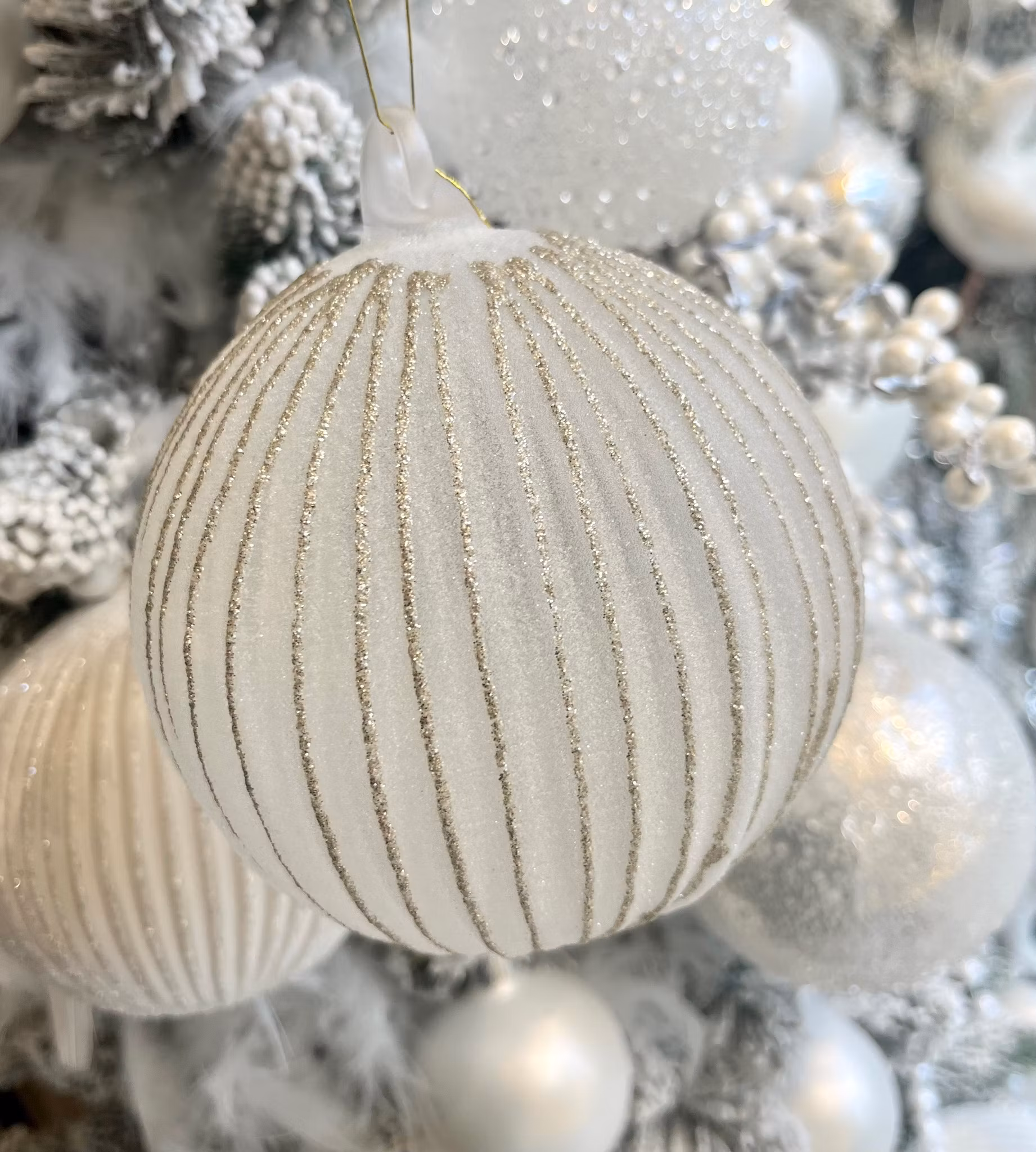 Hem › Julsaker › Hängande pynt/till julgranen › Julkula frostad ribbad med champagne Julkula frostad ribbad med champagne I lager. 179 kr 90 kr Jättefin julkula i frostat glas med ränder i champagneguld. 12cm i diameterHandgjorda och inte perfekta