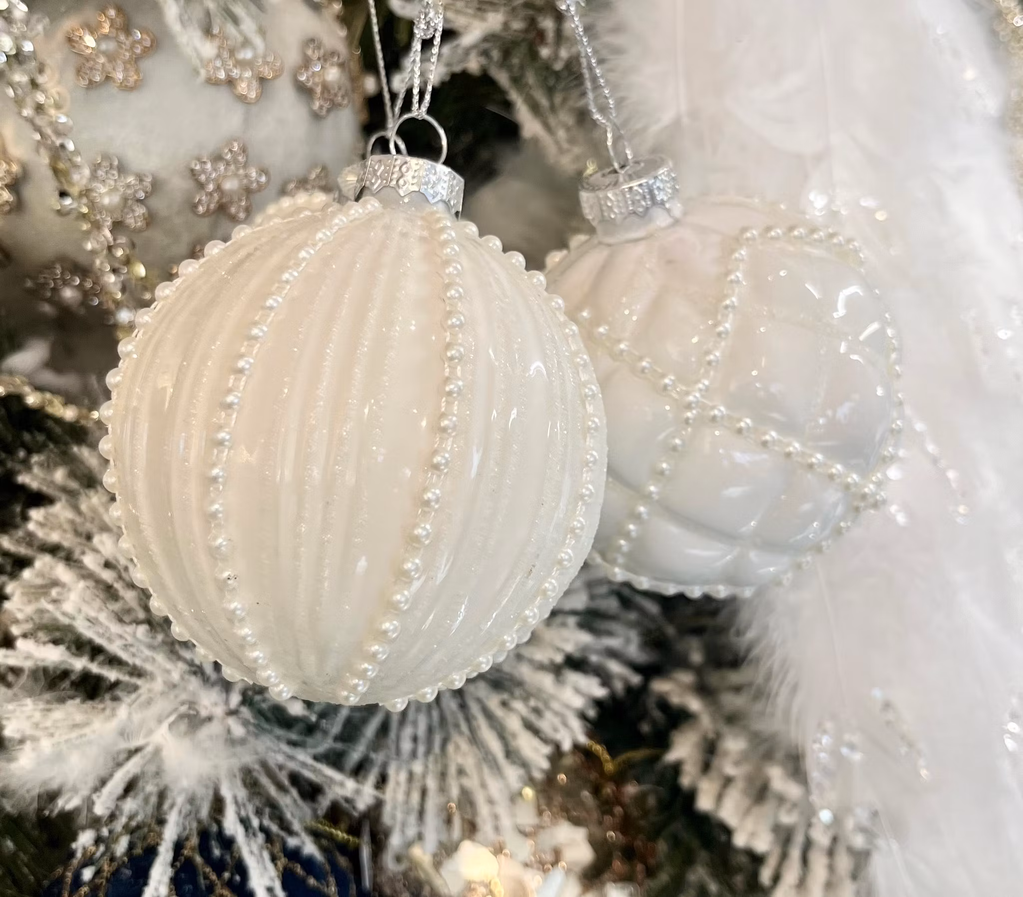 Hem › Julsaker › Hängande pynt/till julgranen › Julkula vit pärlor Julkula vit pärlor I lager. Vilken Stora ribbor Mindre ribbor med glitter Rutor 0 kr 75 kr Jättefin julkula med pärldekoration 8cm i diameter, 3 olika varianter