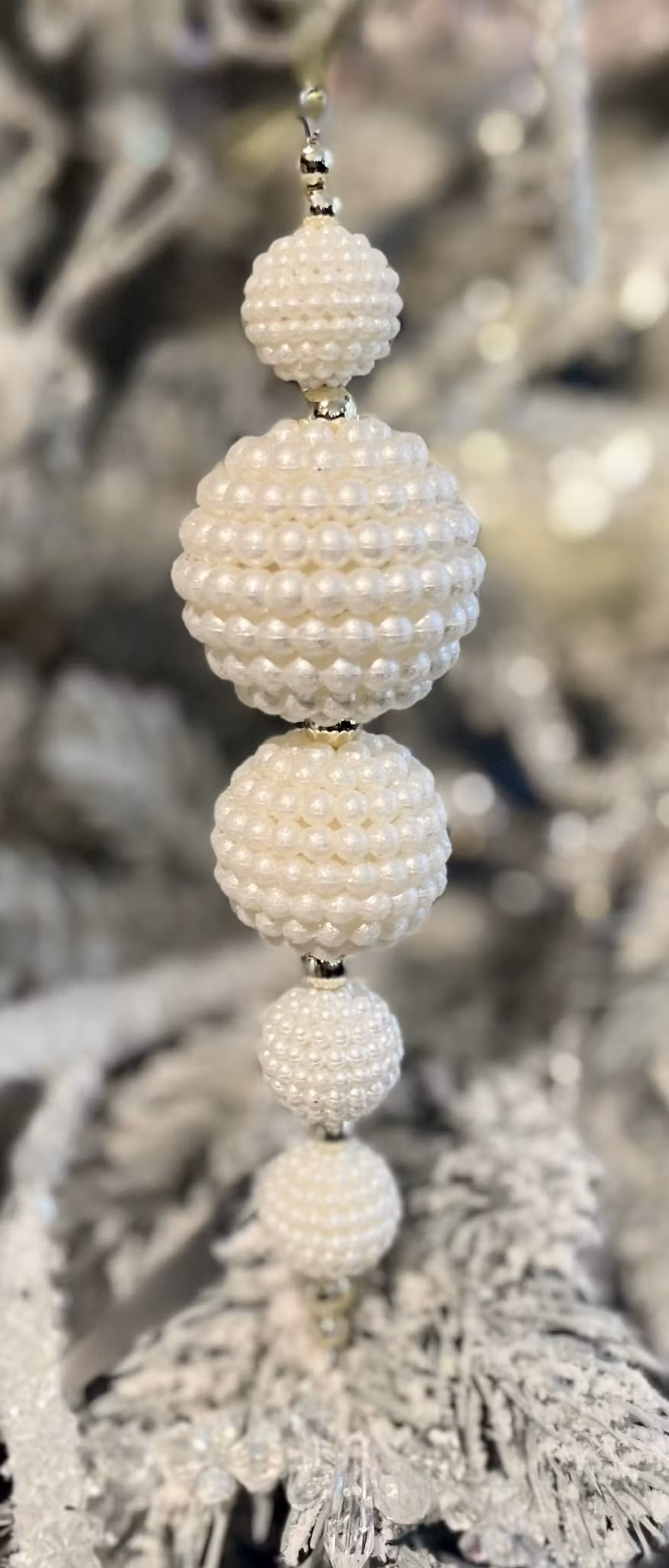 Hem › Julsaker › Hängande pynt/till julgranen › Pärlhänge Pärlhänge I lager. 0 kr 159 kr Jättefint hänge av pärlbollar på rad, 17cm lång