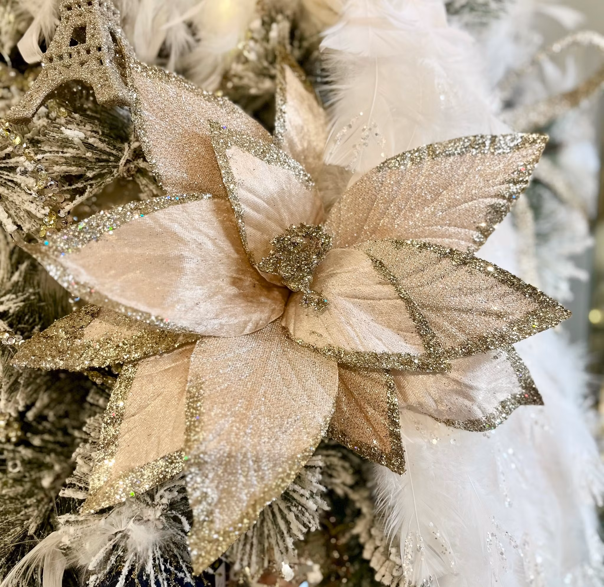 Hem › Julsaker › Hängande pynt/till julgranen › Poinsettia ljusrosa Poinsettia ljusrosa I lager. 0 kr 85 kr Jättefin blomma i ljusrosa och champagneglitter, helt böjbara blad ca 33cm i diameter