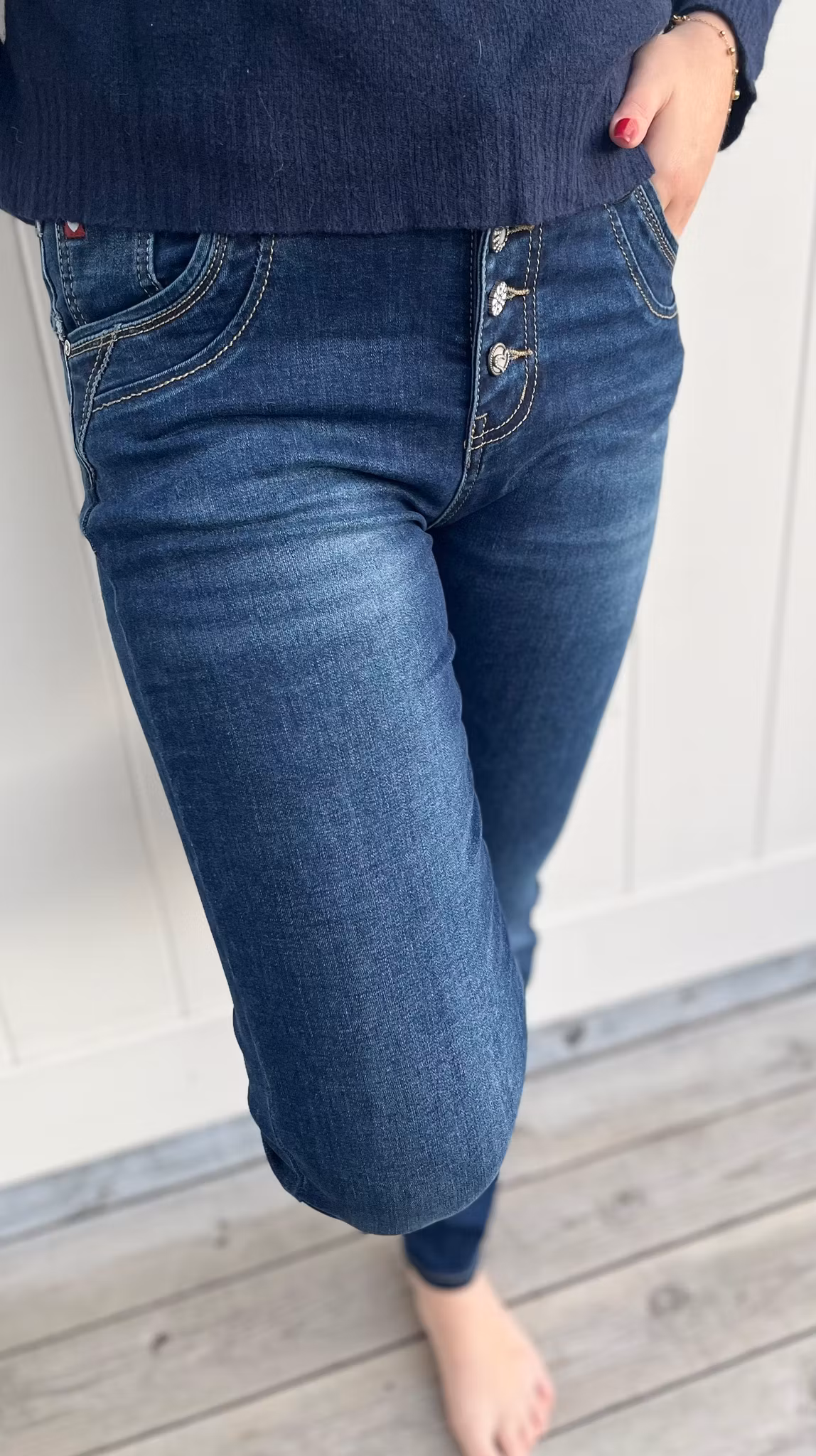 Hem › Kläder › Byxor/kjol › Chica London mörka jeans med diamantknappar Chica London mörka jeans med diamantknappar I lager. Storlek 34 36 38 42 44 0 kr 699 kr Jättesnygga mörka jeans med mycket stretch normala till stora i storleken