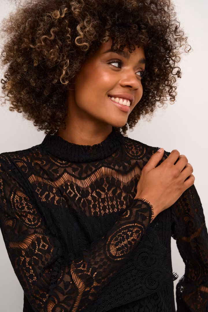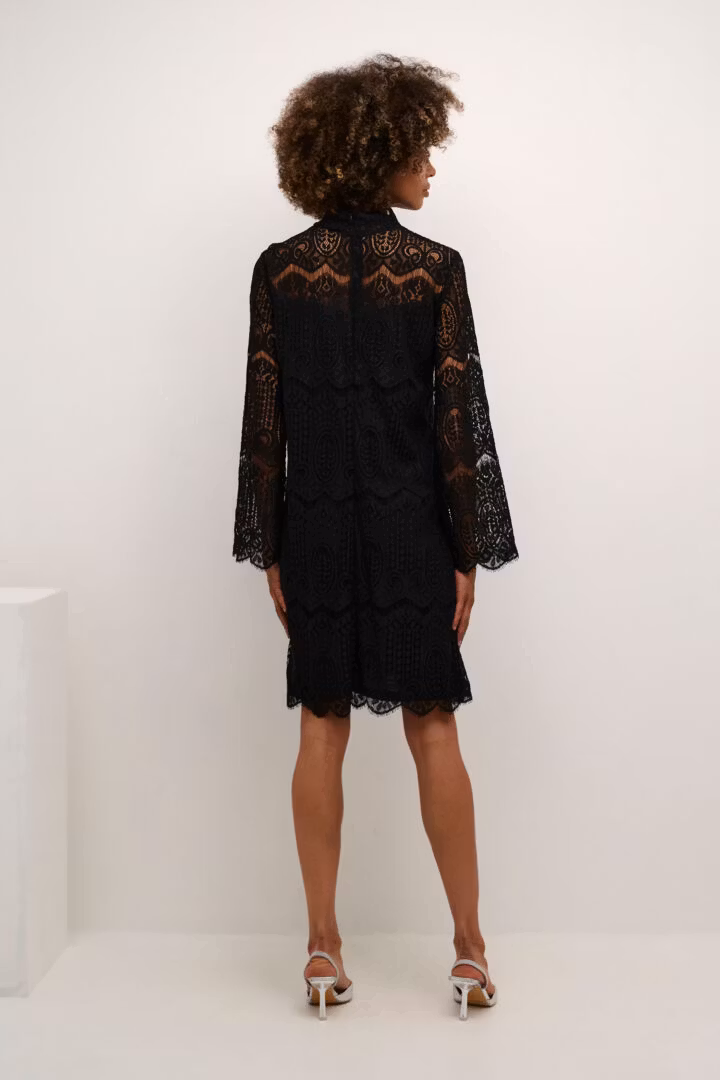 Jättefin supermjuk lätt stretchig spetsklänning som är perfekt att packa med sig. 60% bomull, 40% polyamid. Ärmarna och upptill är transparent med bara spetsen