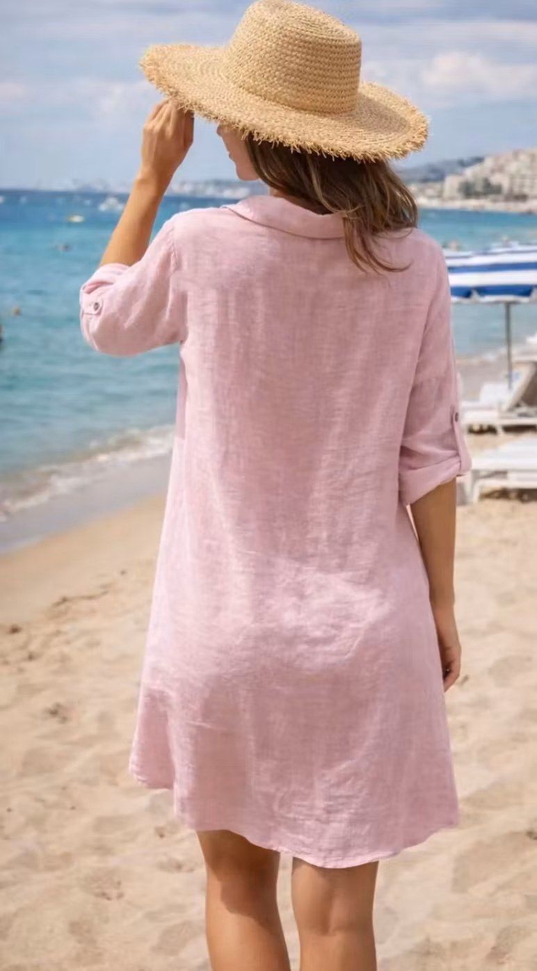 Linneklänning ljus gammalrosa
