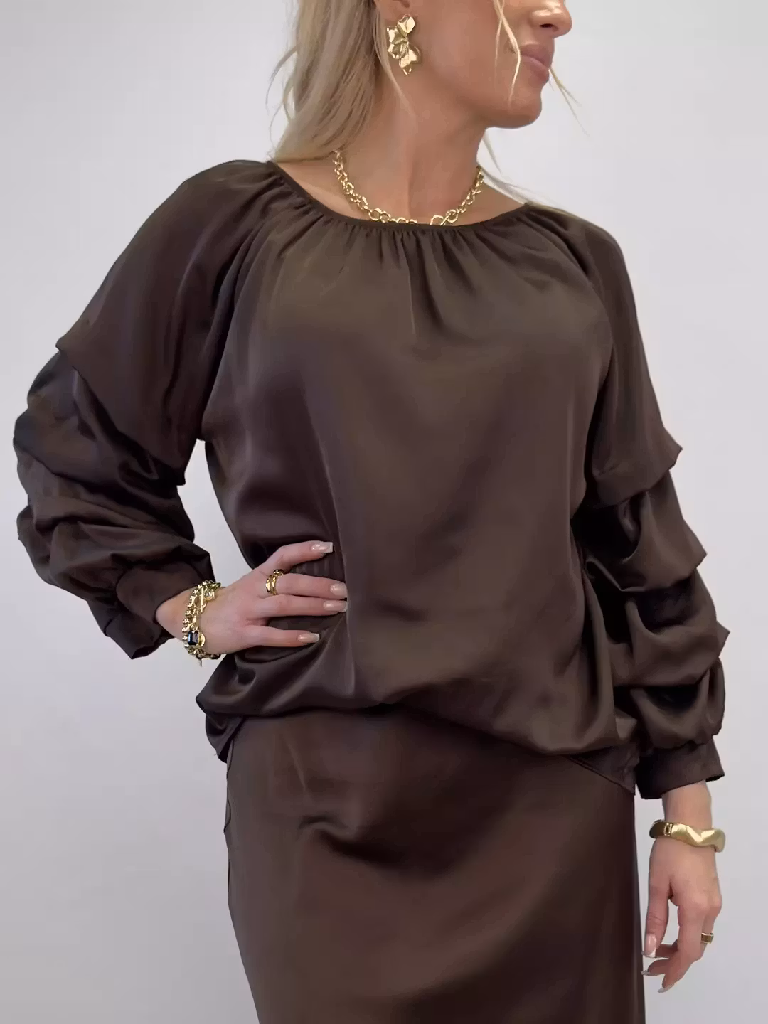 Hem › Kläder › Överdelar › Raya blus brun Raya blus brun I lager. 0 kr 499 kr Jättehärlig silkig blus med volanger på ärmarna. Onesize passar 36-44. Bystmått 65cm. 100% polyester